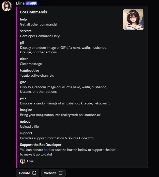 Shows all Commands Available.